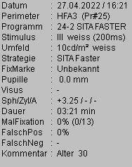In diesem Bild werden die allgemeinen Patienten- und Untersuchungsdaten ohne die Ergebnisse an den Messpunkten dargestellt:
