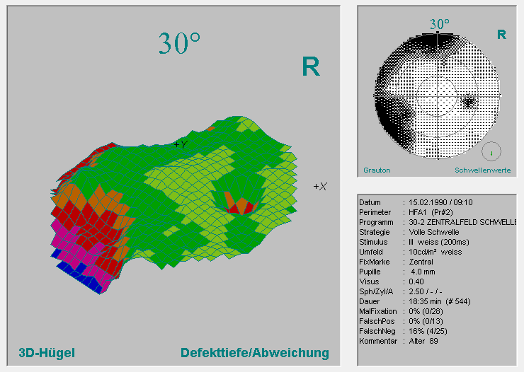 1 Der 3-D-Hügel zeigt den Gesichtsfeldhügel in einer perspektivischen Ansicht, die man drehen und kippen kann.