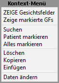 STRG + T ALT + ENTER ALT + Mausklick: alle Untersuchungen EINES Patienten werden markiert (ausgewählt), aber die Gesichtsfelder werden nicht gezeigt. Das Datenbank-Fenster bleibt vorne. Verwendet z.B. zum Kopieren von Untersuchungen eines Patienten.